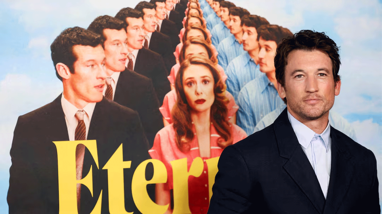 Teller and Olsen play older married couple Larry and Joan Cutler, who upon their arrival are shocked to meet Joan’s first husband, Luke (Callum Turner), who died in the Korean War and has been waiting for her ever since.