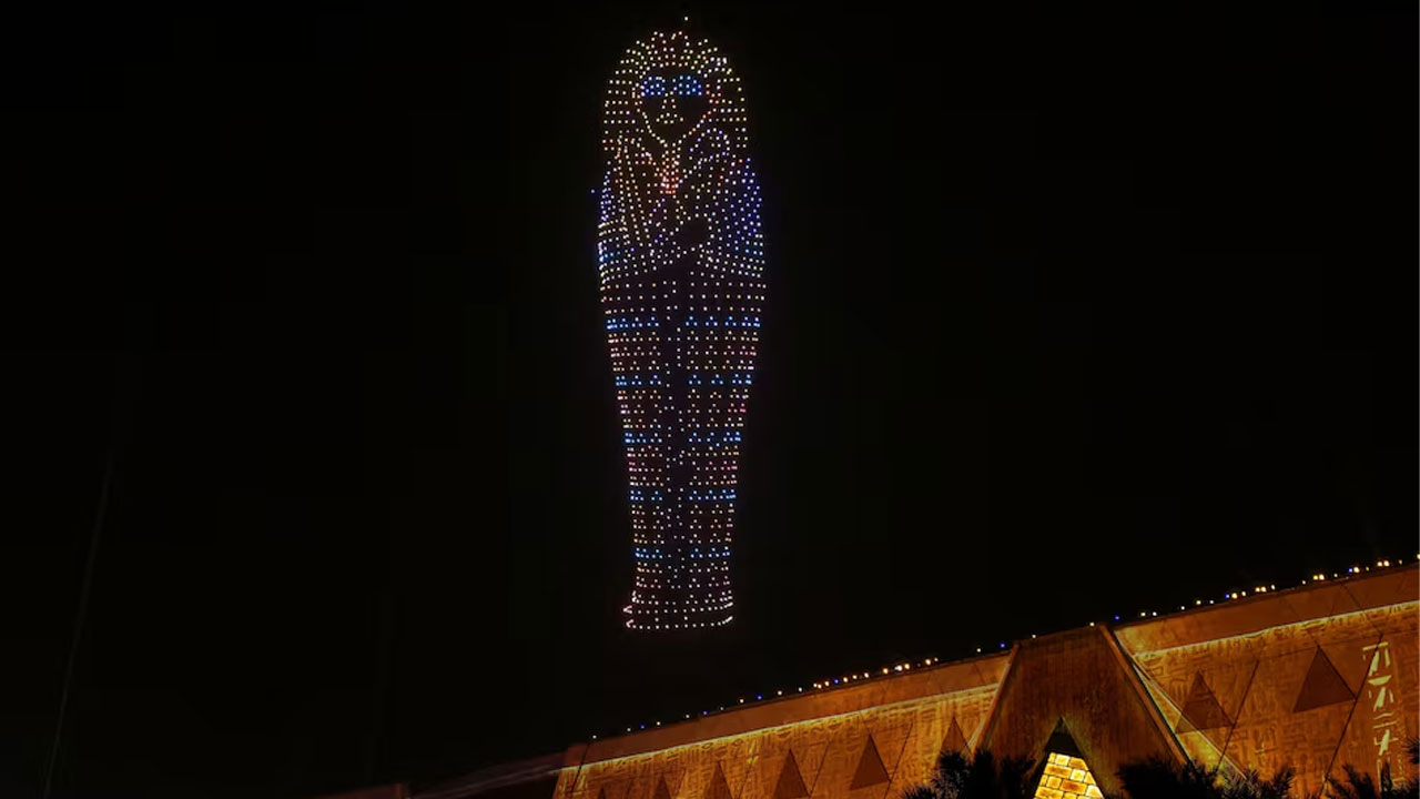 Spectators including President Abdel Fattah al-Sisi gathered late on Saturday before an enormous screen outside the museum, which projected images of the country’s most famous cultural sites as dancers in glittering pharaonic-style garb waved glowing orbs and scepters.