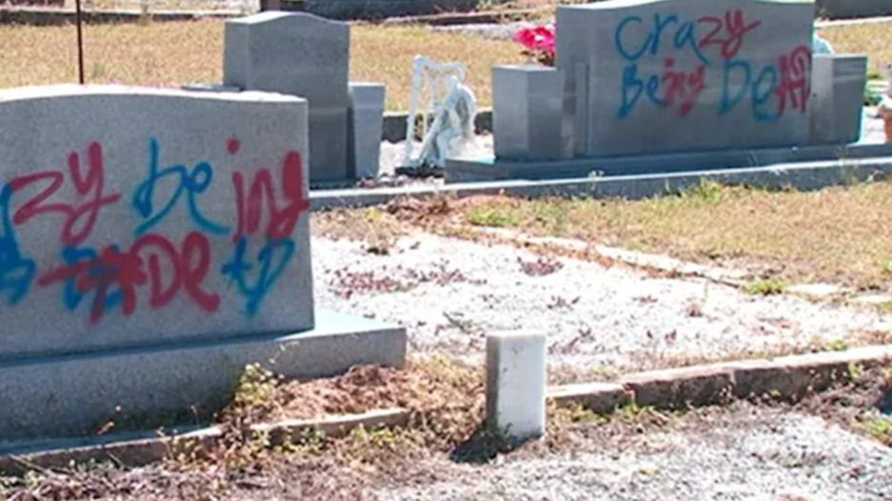 Vandalised tombstones for illustration purposes