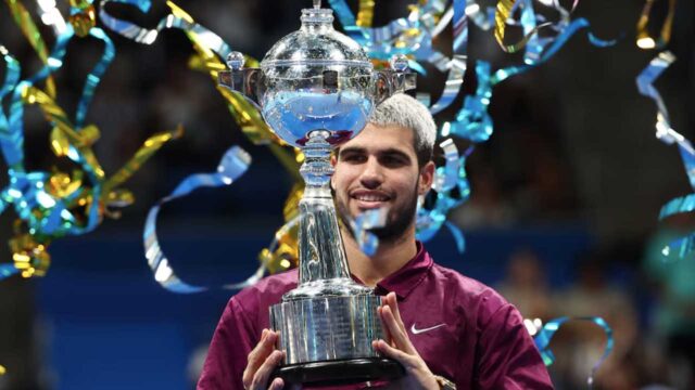 World number one Carlos Alcaraz wore down Taylor Fritz 6-4 6-4 in the Japan Open final on to win his eighth title of a spectacular year and further cement his status as a dominant force in the men’s game.