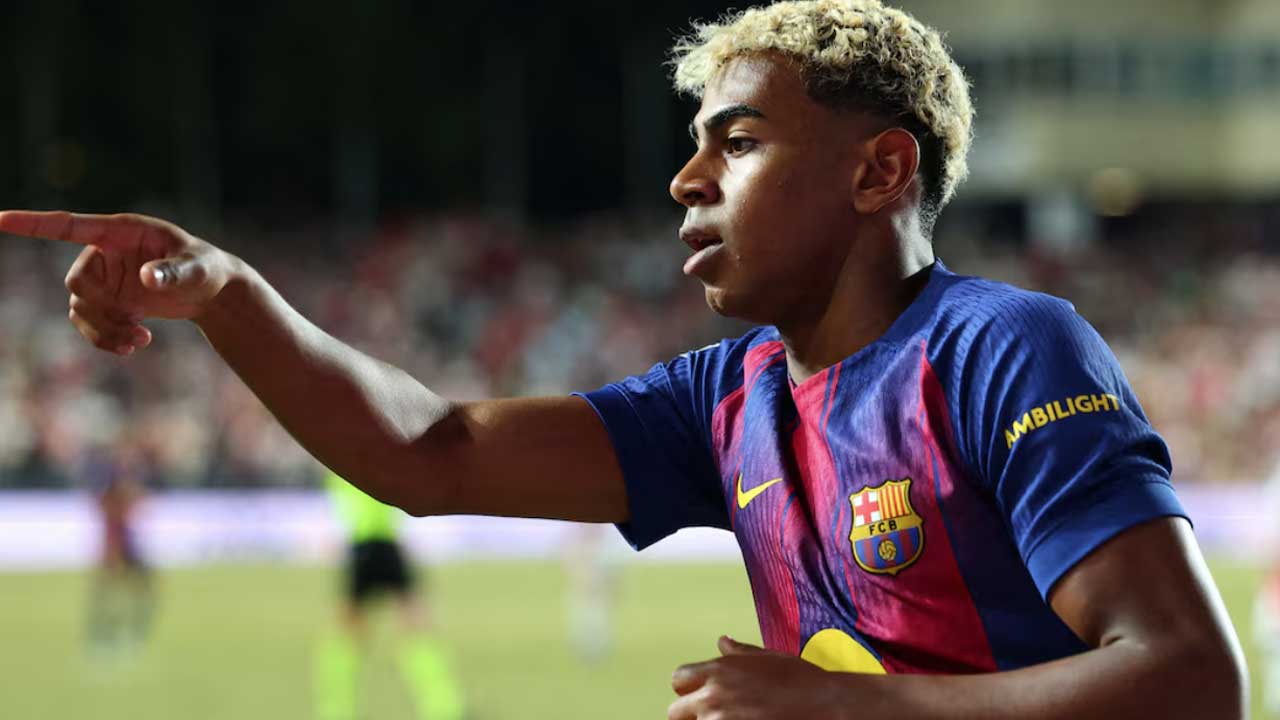 FC Barcelona's Lamine Yamal reacts. [Photo Credit: Reuters]