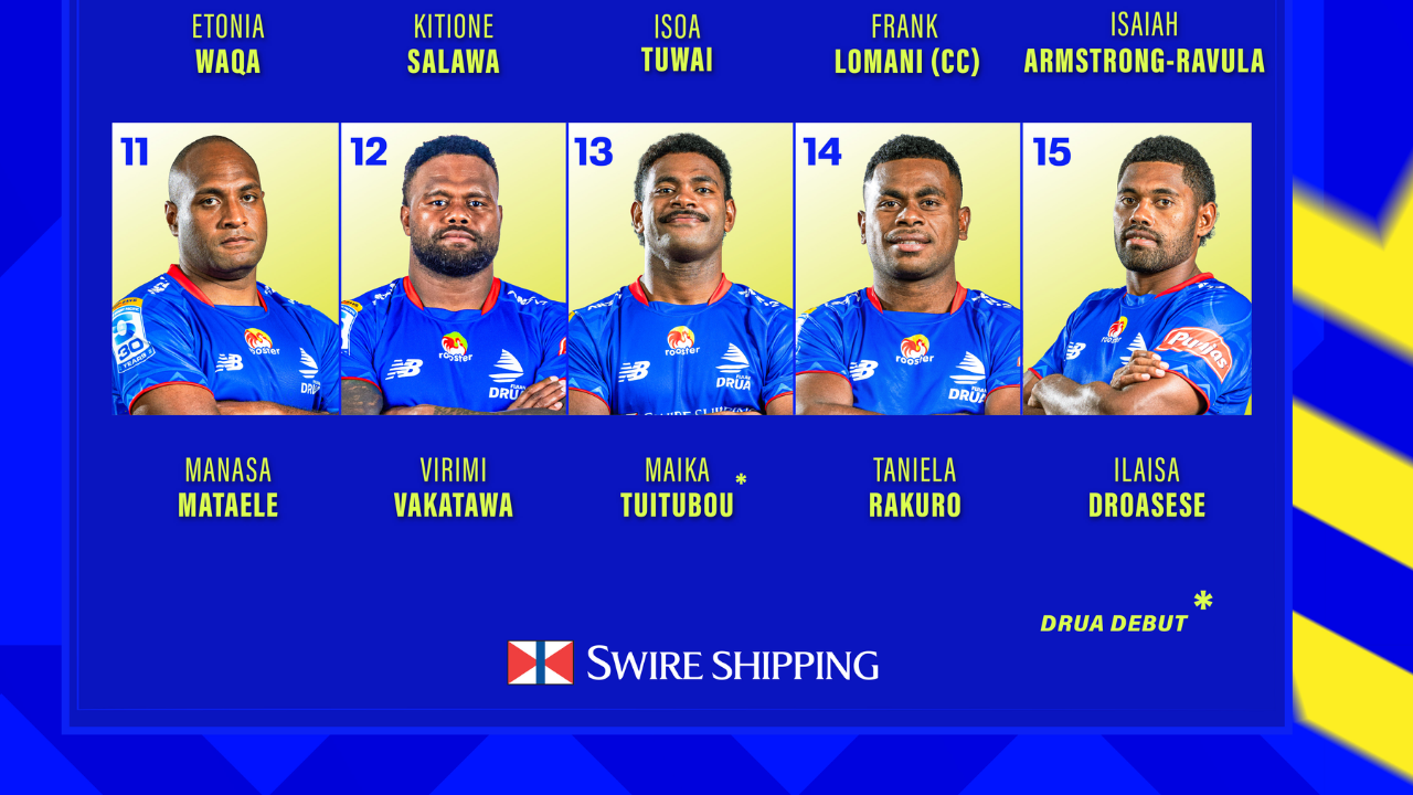 Lomani will start at halfback, combining with Isaiah Armstrong-Ravula in the halves. The backline sees Virimi Vakatawa at inside centre with Tuitubou outside him, while Ilaisa Droasese slots in at fullback. Wingers Manasa Mataele and Taniela Rakuro complete the starting back three.